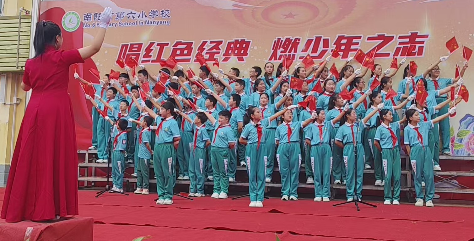 朗朗童声,赞不尽祖国的繁荣昌盛;悠悠歌声,颂不完我们的美好生活。山河披锦绣,盛世写华章!南阳市第六小学全体师生将把中华民族伟大复兴的使命担在肩上,怀揣着对未来的憧憬,以昂扬的姿态更好地迈向未来!