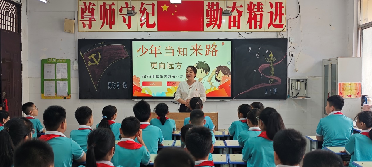 扎根思政课堂,筑牢理想信念。9月2日,该校党总支书记褚卫军以“少年当知来路更向远方”为题,为学生讲授思政课。课堂上,褚卫军深情回顾那段波澜壮阔的抗战历史,她用生动的抗战英雄事迹,如杨靖宇将军的壮烈牺牲、狼牙山五壮士的英勇就义等,激励同学们传承和弘扬伟大的抗战精神。讲述富有感染力,不时与师生们互动交流,她提出问题引导学生思考,如“革命精神对我们今天的学习和工作有什么启示?”,学生们积极回答,现场气氛热烈。不少学生表示,通过这堂思政课,更加深入地了解了革命精神的内涵,也更加明确了自己的责任和使命。