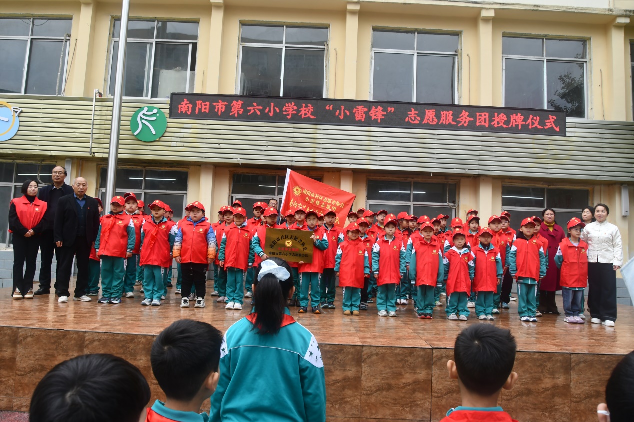 10月13日,在南阳市第六小学校周一升旗仪式上,举行了南阳市社区志愿者协会小雷锋志愿团第六小学志愿服务队成立仪式,该校首批160名小雷锋志愿者见证了这一光荣而又难忘的时刻。
