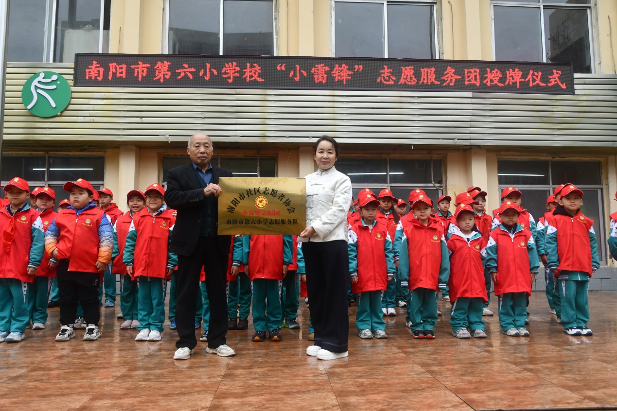 成立仪式上,南阳市社区志愿者协会党支部书记李相岑为第六小学小雷锋志愿服务队授牌;南阳市社区志愿者协会小雷锋志愿团团长刘萌萌为第六小学校小雷锋志愿服务队授旗。南阳市第六小学校党支部书记褚卫军、南阳市社区志愿者协会党支部书记李相岑分别讲话。他们祝贺首批加入小雷锋志愿服务队的同学们成为一名光荣的小雷锋志愿者,鼓励他们要倍加珍惜这次难得的机会,在今后的学习和生活中,从自我做起,从身边小事做起,时时处处学雷锋、做好事,争做德智体美劳全面发展的新时代好少年。卧龙区应急管理局相关负责人表示,卧龙区应急管理局将携手南阳市第六小学校小雷锋志愿服务队,通过对小雷锋志愿者进行安全知识培训,培养出一批小雷锋安全宣讲员,让他们在学校、在家庭、在所住小区进行安全知识宣讲,并将这一做法在全区推广。