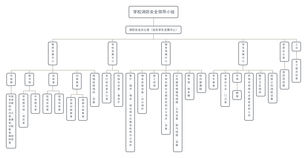 学校场所消防安全管理采取层级分包,各司其责,把消防防范工作按场所对应归口做实做细。各场所日常消防管理包括人员行为管理、设备管理、消防器材管理、隐患排查和消除等各项消防安全工作。