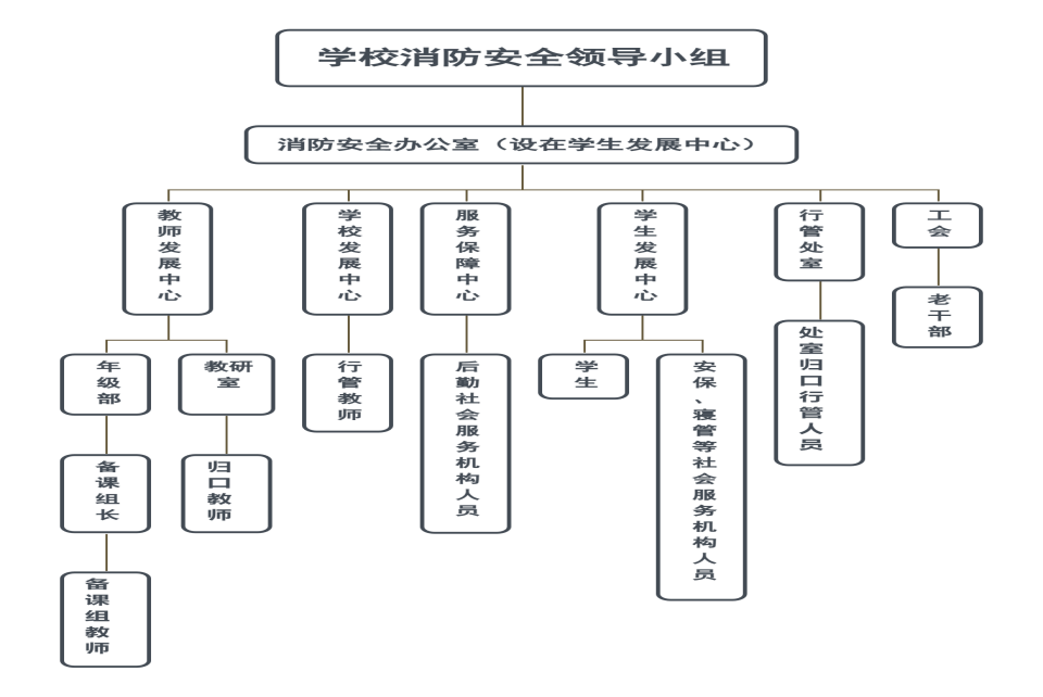 工作职责:对学校消防安全工作负总责,进行全面领导和安排部署。火情发生后,副组长担任火情处置总指挥,分管领导担任火情处置副总指挥,其他成员承担总指挥分配的临时工作。